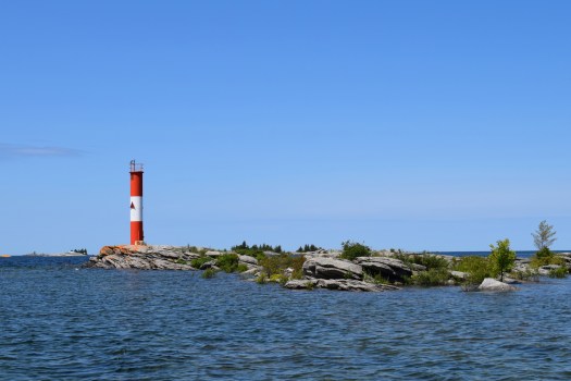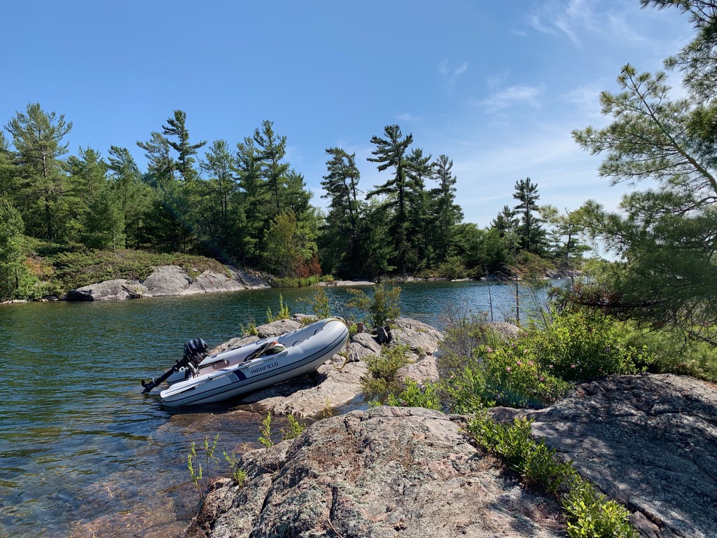 Most visitors to Georgian Bay Islands National Park know it from its single largest chunk, Beausoleil Island, and for good reasons: it’s where the campsites, cabins and other shelters, hiking and biking trails, and docks for transient boaters are. But the park’s holdings extend much farther than that. The park’s website has nothing to say about these other bits and pieces, but in the nearby Cognashene area, there’s a big chunk at nearby Bone Island, and another, less accessible holding at Portage Island. Farther up the bay, around O’Donnell Point and Twelve Mile Bay, you can find a number of additional islands/islets. Some are at Gillford Rocks and inside O’Donnell Point. The largest accessible holding is the Hatch Islands group, near O’Donnell Point, on the south side of the O’Donnell Point Provincial Nature Reserve. While none of these sites are available for overnight occupation, and the province advises of the wilderness reserve: “Camping is prohibited and recreational day-use for walking and nature appreciation is discouraged due to the sensitivity of the reserve’s natural values,” these spaces help preserve some wildness in a busy part of eastern Georgian Bay. Boaters with a bit of probing and daring can find anchorages far from the proverbial madding crowds.