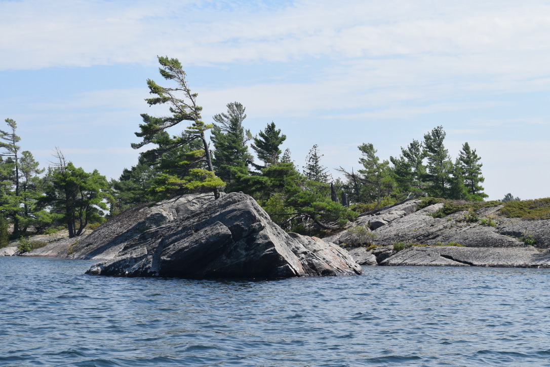 A key ambition of the 2020 season, with a new (to us) boat and a covid-19 lockdown urging us into wilderness, was to get back to Black Bay, north of Britt, on northeastern Georgian Bay. We hadn’t been there in close to 20 years, back when we kept a powerboat at Wright’s Marina in Britt and drove to it for excursions from our home outside Midland. Wright’s is still there, and is still as fine a family-run marina as it ever was, and after an overnight there, we reached Black Bay, just around the corner, to the north.