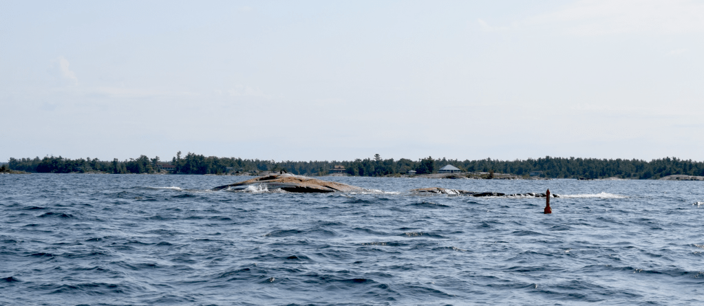 If nothing else, I hope this quick tour of red-right-returning around southeastern Georgian Bay conveys how complex the navaids system is. Anyone plying the waters of Georgian Bay needs to make a careful study of the charts before they plunge in. You need to understand how the many channels are oriented before you find yourself in them and wondering, at twenty-plus knots, which side of the fast-closing buoy you should pass on. And don’t count on the dashed course line of a digital chart or an app’s automatic routing options to figure it out for you.